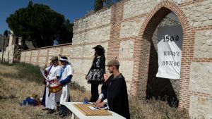 La jornada se desarrolló en el recinto amurallado del Palacio Fortaleza de Alcalá de Henares. Profesores y alumnos consiguieron un “pasaporte” para viajar en el tiempo y se trasladaron al siglo XV donde pudieron observar con sus propios ojos algunas de los momentos más importantes de la vida del Cardenal Cisneros.