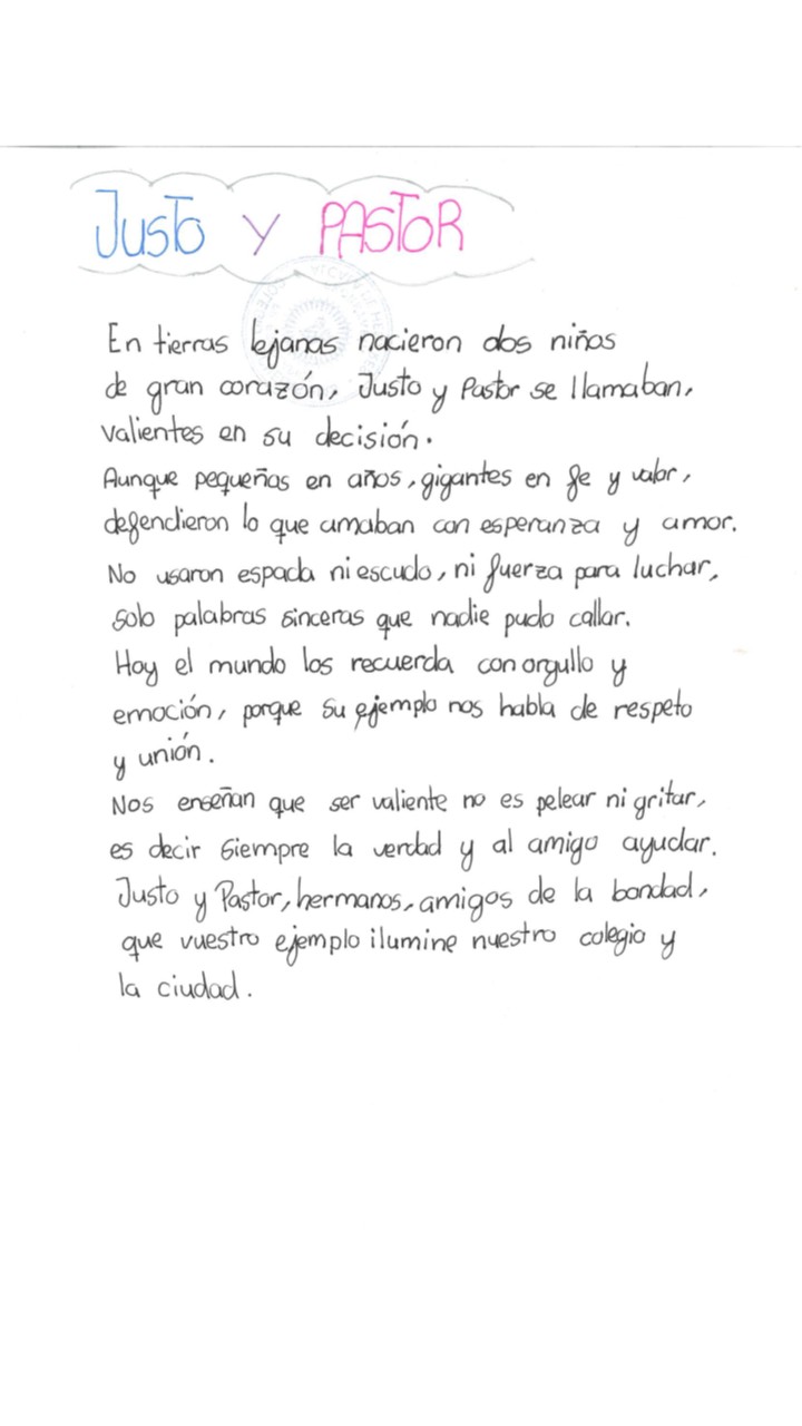 En esta ocasión, el lema propuesto para el concurso era «Justo y Pastor son un impulso para nuestra fe», y claramente todos sus profesores han hecho un trabajo excelente de motivación y explicación de la historia y martirio de nuestros santos patronos.